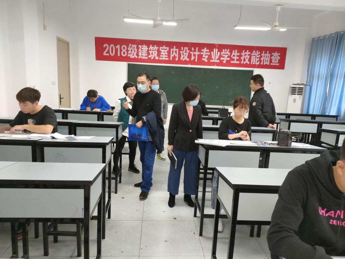 10月27日下午,建筑工程系在環(huán)形教學樓E206、E210開展2018級建筑室內(nèi)設(shè)計專業(yè)技能抽查。學院院長助理王建輝、教務(wù)處副處長徐飛親臨考場巡視,楊峻峰、董建民督導對全程進行了督查,建筑工程系項林主任也到場督陣。被抽中的21位同學按照當場所隨機抽中的兩個模塊CAD制圖、手繪和具體內(nèi)容進行了長達3個小時的考試。