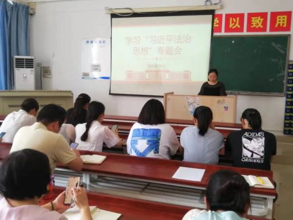 根據(jù)長沙市教育局黨史學(xué)習(xí)教育領(lǐng)導(dǎo)小組下發(fā)的《關(guān)于學(xué)習(xí)宣傳貫徹習(xí)近平法治思想的通知》精神,基礎(chǔ)教學(xué)部黨總支于2021年9月28日下午在C棟406舉行了“習(xí)近平法治思想”專題學(xué)習(xí)會。