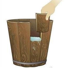 盛水的木桶是由多塊木板箍成的,盛水量也是由這些木板共同決定的。若其中一塊木板很短,則此木桶的盛水量就被限制,該短板就成了這個(gè)木桶盛水量的“限制因素”。若要使此木桶盛水量增加,只有換掉短板或?qū)⑵浼娱L(zhǎng)才行。一個(gè)木桶無(wú)論有多高,它盛水的高度取決于其中最低的那塊木板。