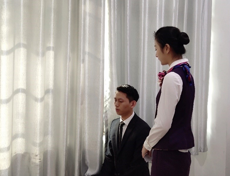 2020年是學(xué)校課程思政建設(shè)年,空中乘務(wù)專業(yè)在實施“三全育人”綜合改革過程中始終堅持以理想信念教育為核心。教研室老師進行集體思政備課,挖掘課程思政元素,強調(diào)敬畏規(guī)章、敬畏生命、敬畏職責的精神。例如,結(jié)合基于民航真實事件“川航3U8633航班緊急迫降成都雙流機場”拍攝的電影《中國機長》等,讓學(xué)生更加明晰空中乘務(wù)員的責任和擔當,樹立民航精神。