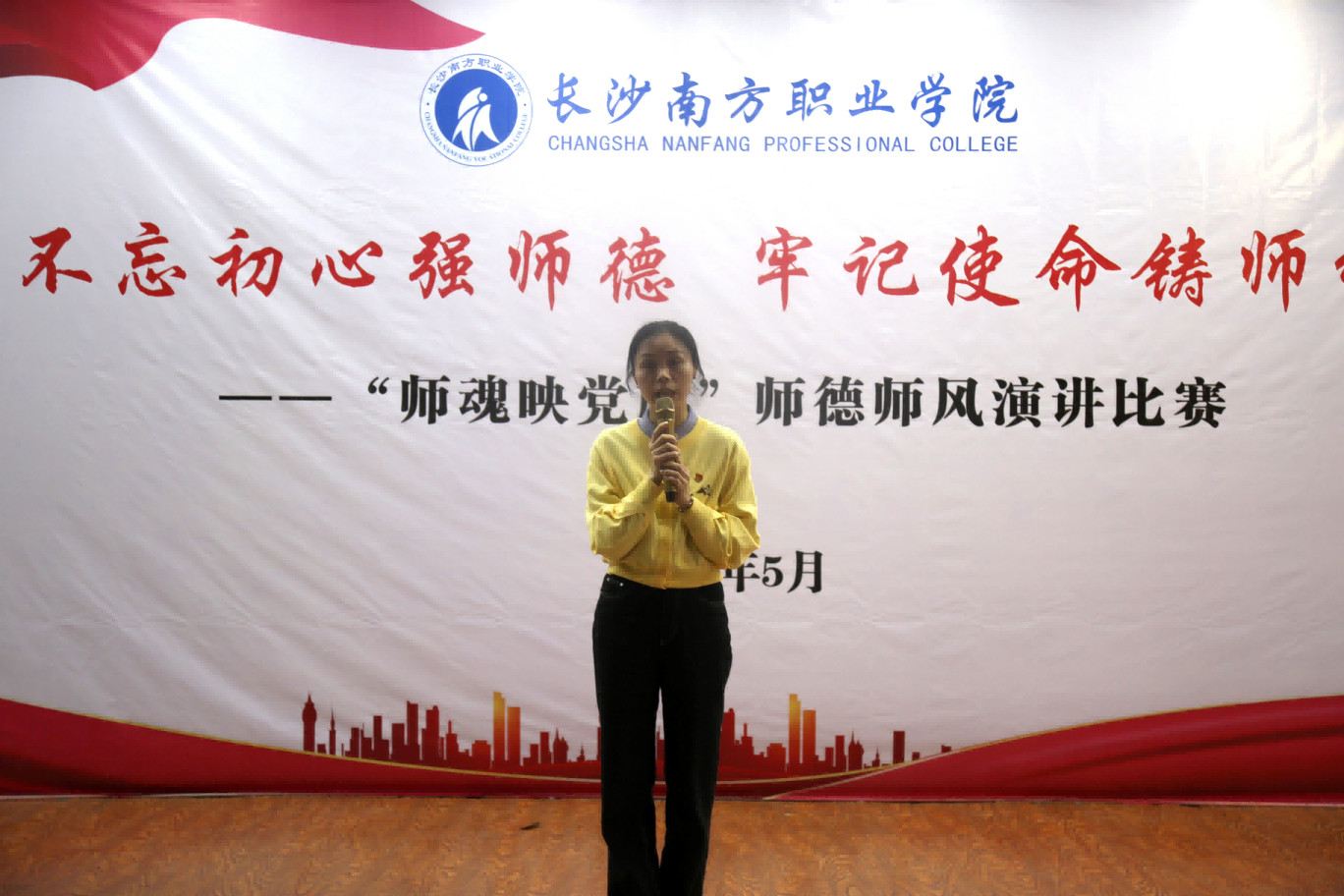 為慶祝中國(guó)共產(chǎn)黨成立100周年,繼承和發(fā)揚(yáng)黨的優(yōu)良革命傳統(tǒng),全面落實(shí)立德樹人根 本任務(wù),切實(shí)提升學(xué)院教師思想政治素質(zhì),5月25日,學(xué)院在學(xué)術(shù)報(bào)告廳隆重舉行“師魂映黨旗”主題師德師風(fēng)演講比賽。