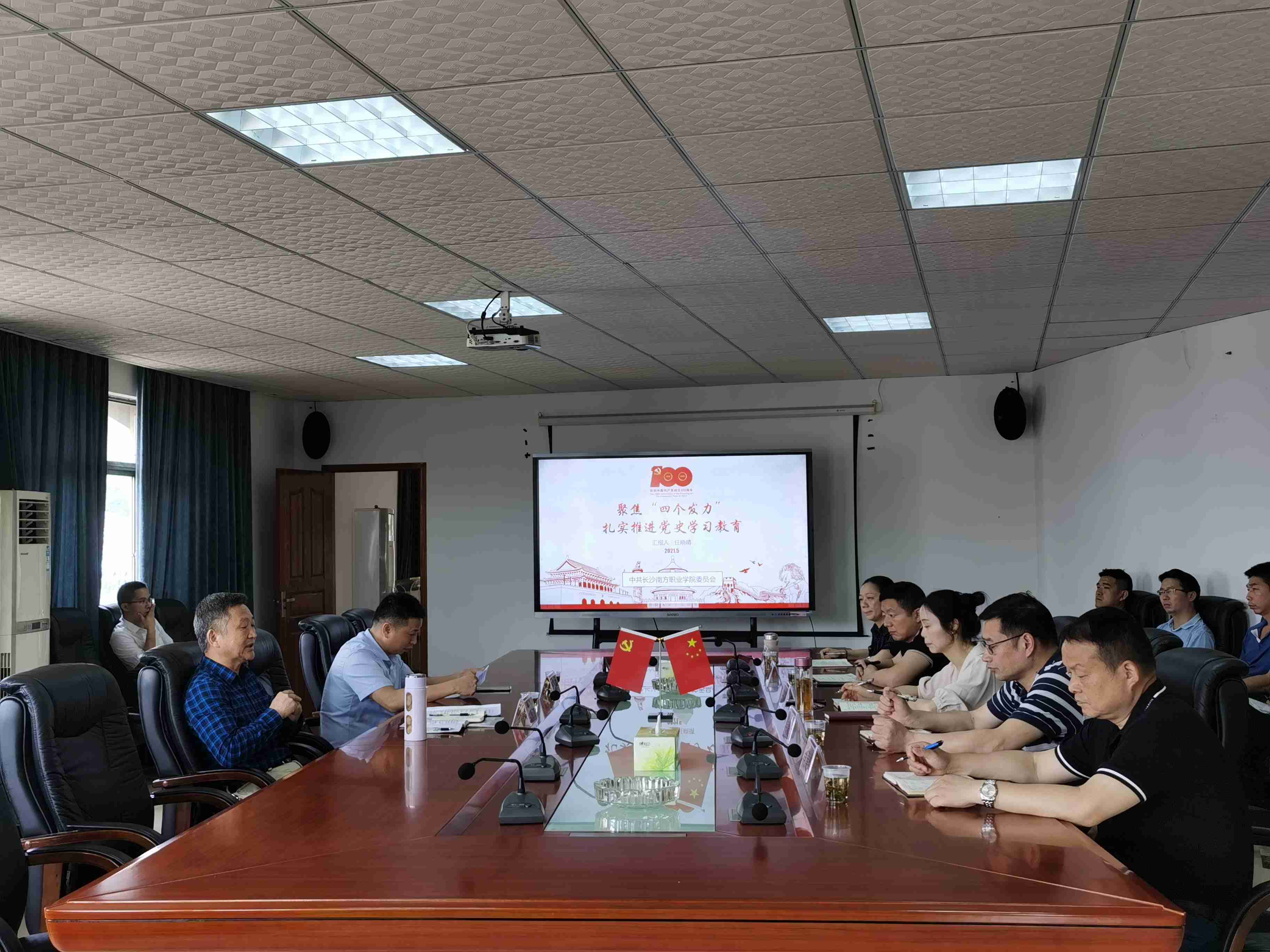 2021年6月1日上午,長沙市教育局黨史學(xué)習(xí)教育第五巡回指導(dǎo)組王天玉、陳忠文一行蒞臨我院督導(dǎo)檢查黨史學(xué)習(xí)教育開展情況。巡回指導(dǎo)組通過聽取工作匯報、與師生座談、查閱相關(guān)資料、查看特色活動載體、實地考察等形式對我院黨史學(xué)習(xí)教育進行了全面深入指導(dǎo)。學(xué)院黨委書記任曉晴,黨委副書記肖曉春,紀(jì)委書記吳濤,統(tǒng)戰(zhàn)部長肖建偉,黨委委員王建輝,各黨總支書記、副書記、專職組織員以及各處室負(fù)責(zé)人參加。會議由任曉晴主持。