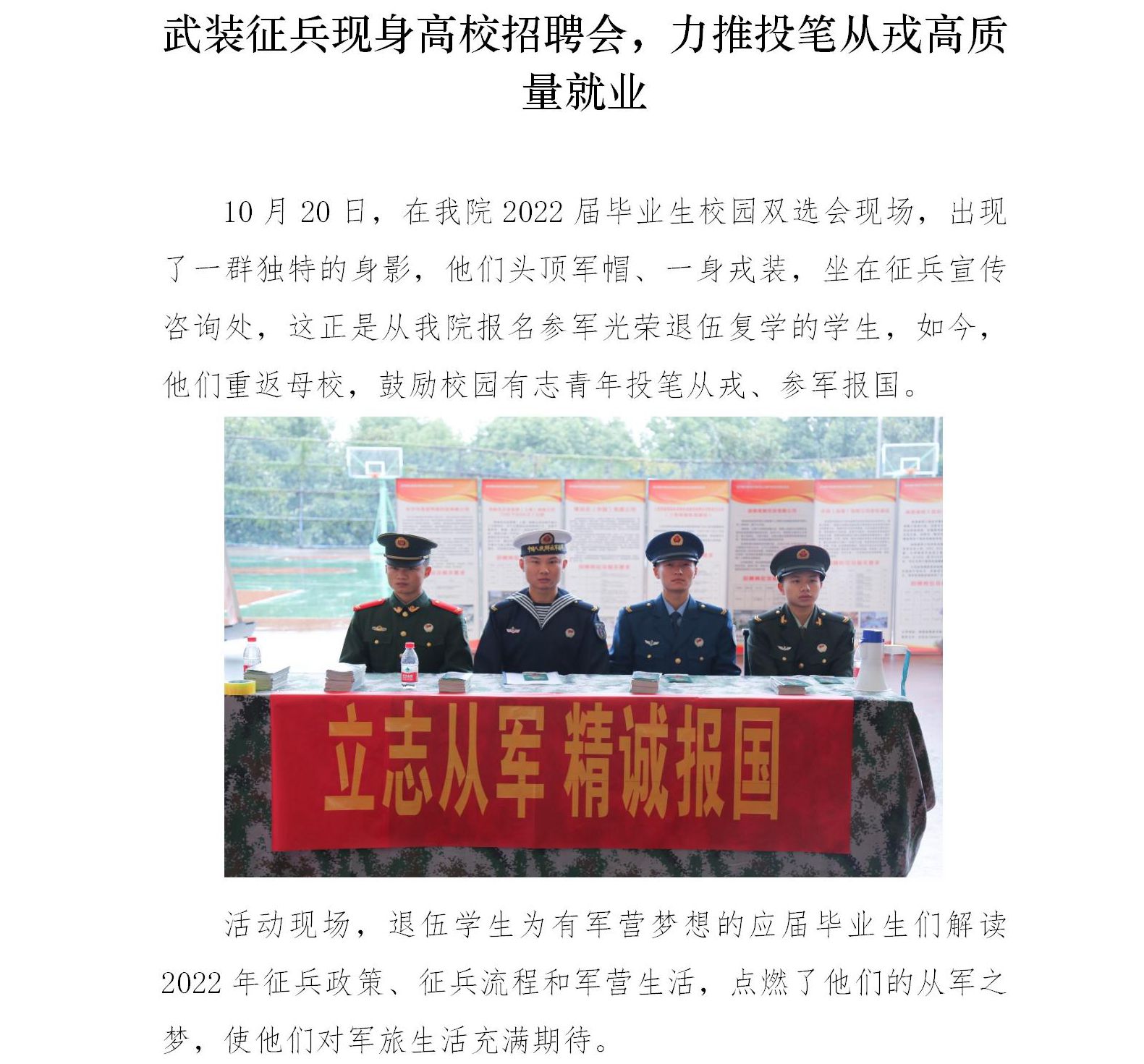 武裝征兵現(xiàn)身高校招聘會(huì),力推投筆從戎高質(zhì)量就業(yè)