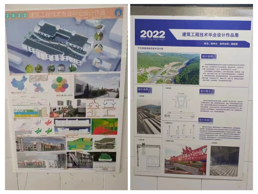 6月24日建筑工程系在B棟教學(xué)樓一樓走廊,舉辦了2022屆學(xué)生畢業(yè)設(shè)計(jì)展。本次畢業(yè)設(shè)計(jì)展覽共展出作品42副。