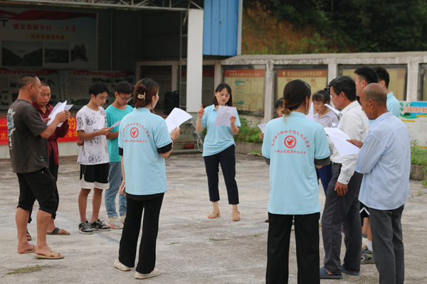 書記反映,村里鄉(xiāng)親父老忙于農(nóng)耕勞作,精神文化、生活?yuàn)蕵啡狈?,志愿團(tuán)隊(duì)量體裁衣,通過廣泛征求尤溪當(dāng)?shù)卮迕褚庖姡驹笀F(tuán)隊(duì)結(jié)合村民留村狀態(tài)及自身實(shí)際情況,組織村民傳唱紅色革命歌曲《十送紅軍》,倍受村民喜愛,茶余飯后,革命紅歌響徹山野,或哼唱練習(xí),或排練組合,既豐富了村里留守老人、小孩的娛樂生活,同時(shí)又為村民補(bǔ)充了愛黨為民的精神之鈣。