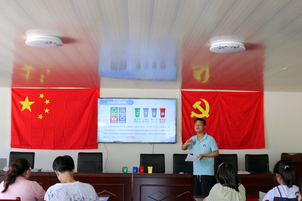 青年志愿者協(xié)會會長文慶陽同學為村里留守兒童宣傳垃圾分類公益知識,與留守兒童們一起做游戲,讓留守兒童們從游戲中學習“生活垃圾分類”相關知識,做“生活垃圾分類”宣傳員。
