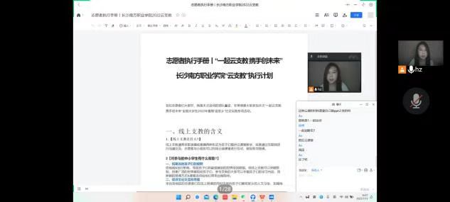 為響應團中央號召,學院團委組織了大學生暑期“返家鄉(xiāng)”社會實踐“一起云支教,攜手創(chuàng)未來”專項活動,此項活動由建筑工程系團總支承辦。經(jīng)前期準備,各院系(部)積極宣傳發(fā)動,學生踴躍報名參加,并于7月13日晚組織了線上培訓會,指導老師及志愿者共100余人參加。