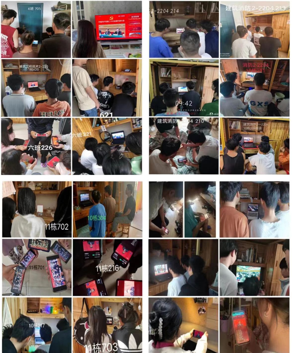 建筑工程系學(xué)生在所在寢室聆聽黨的二十大報(bào)告