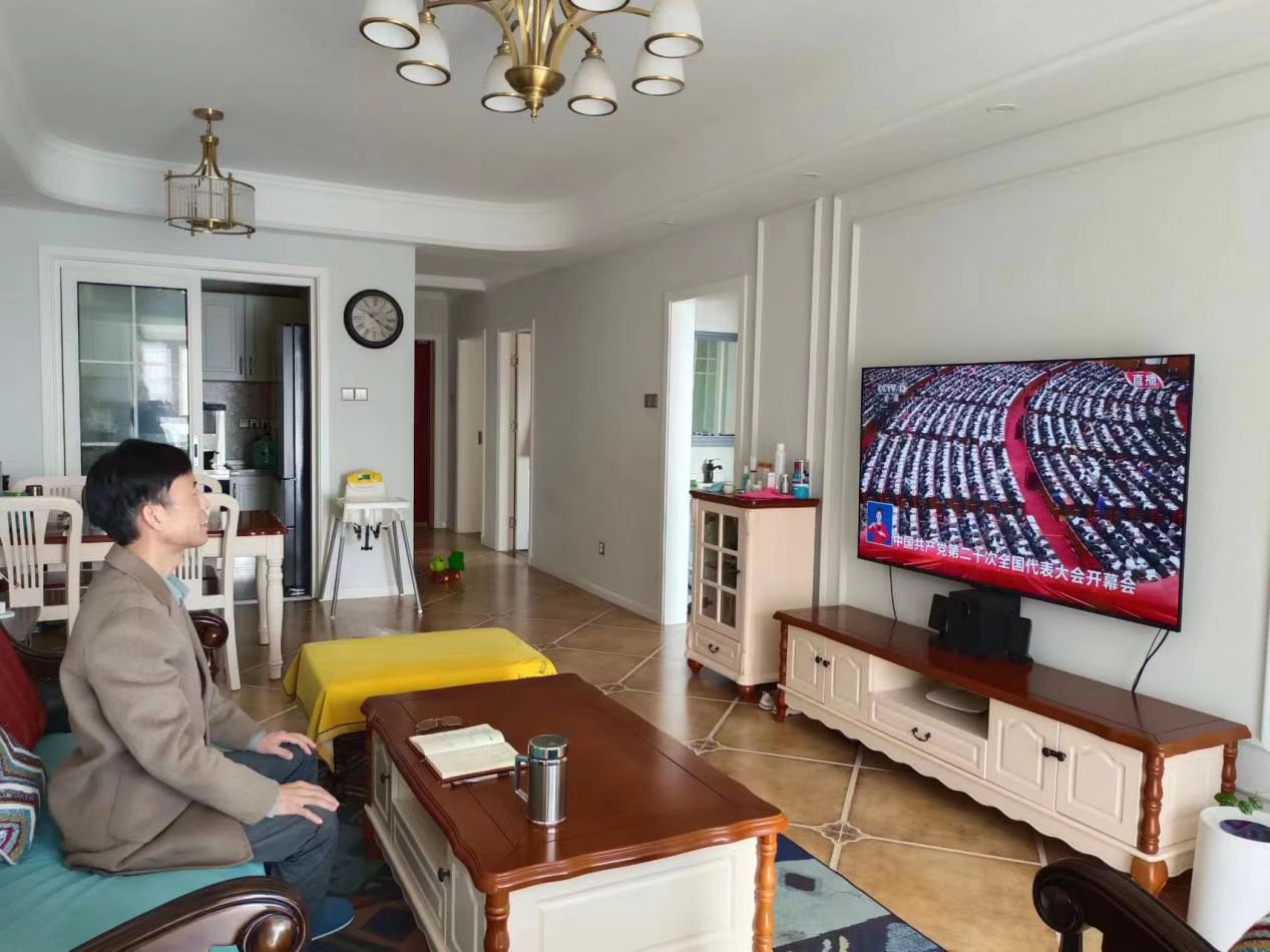 建筑工程系教職員工在家認(rèn)真觀看習(xí)總書記所作的黨的二十大報(bào)告