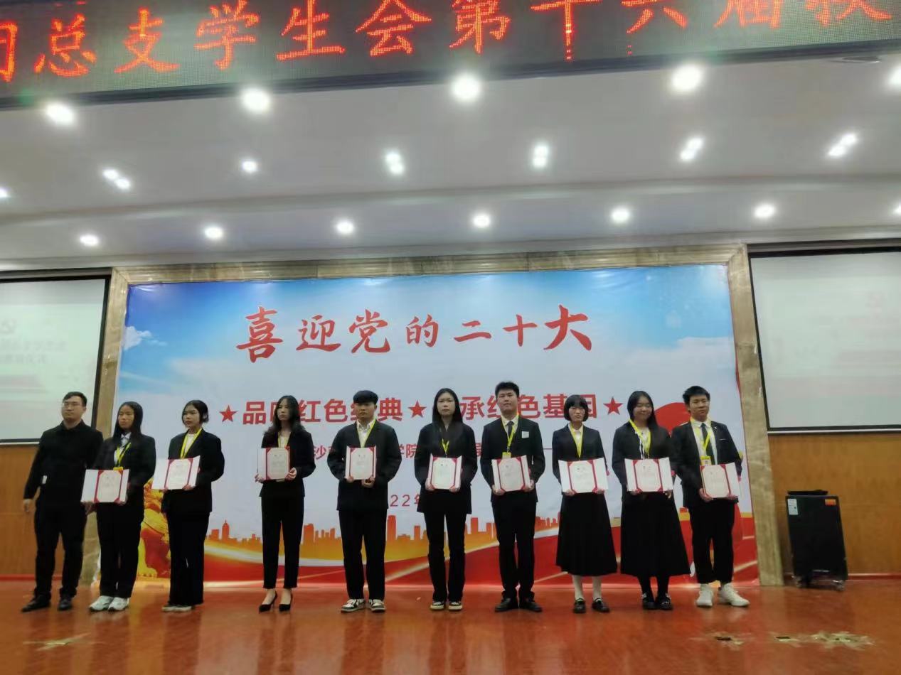 彭偉副主任為上一屆學生會優(yōu)秀干部頒發(fā)榮譽證書