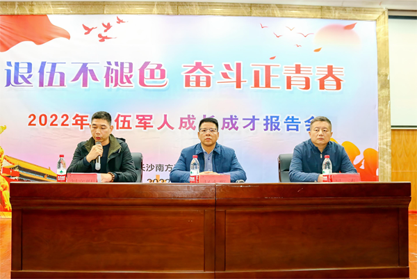 報告會現(xiàn)場會上,學(xué)生工作處、武裝部負(fù)責(zé)人介紹了今年征兵工作情況及當(dāng)前大學(xué)生應(yīng)征入伍優(yōu)待政策。并表示,學(xué)校將把退役大學(xué)生關(guān)愛工作落到實(shí)處,從思想教育引導(dǎo)、學(xué)業(yè)針對性指導(dǎo)和加強(qiáng)就業(yè)扶持等方面予以支持,發(fā)揮退役大學(xué)生士兵特有優(yōu)勢,在轉(zhuǎn)換人生角色中再立新功。優(yōu)秀退役大學(xué)生徐濤、李貰豪、李欣、戴輝、袁鈞、盧若言作代表發(fā)言,分享自己的從軍經(jīng)歷和個人成長感悟,號召全體同學(xué)勇敢追逐青春夢想,用熱血唱響新時代強(qiáng)軍之歌,將愛國之心化為報國之志,積極投身祖國、社會及學(xué)校的發(fā)展建設(shè)。