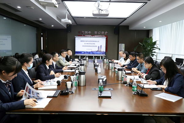 長(zhǎng)沙南方職業(yè)學(xué)院與湖南湘江城市運(yùn)營(yíng)管理有限公司座談會(huì)現(xiàn)場(chǎng)