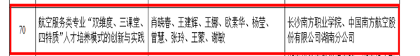 2022年6月19日,湖南省教育廳發(fā)布了《關(guān)于公布2021年湖南省職業(yè)教育省級教學(xué)成果獎獲獎成果的通知》(湘教通〔2022〕165 號)。 我院肖曉春副教授主持的《 航空服務(wù)類專業(yè)“雙維度、三課堂、四特質(zhì)”人才培養(yǎng)模式的創(chuàng)新與實踐》、宋文平副教授主持的《三全育人背景下“四融三促兩向”高職軟件技術(shù)專業(yè)人才培養(yǎng)研究與實踐》、繆學(xué)梅副教授主持的《“多維遞進、協(xié)同育人”—現(xiàn)代工匠型技能人才培育的應(yīng)用實踐》等項目均獲得三等獎。
