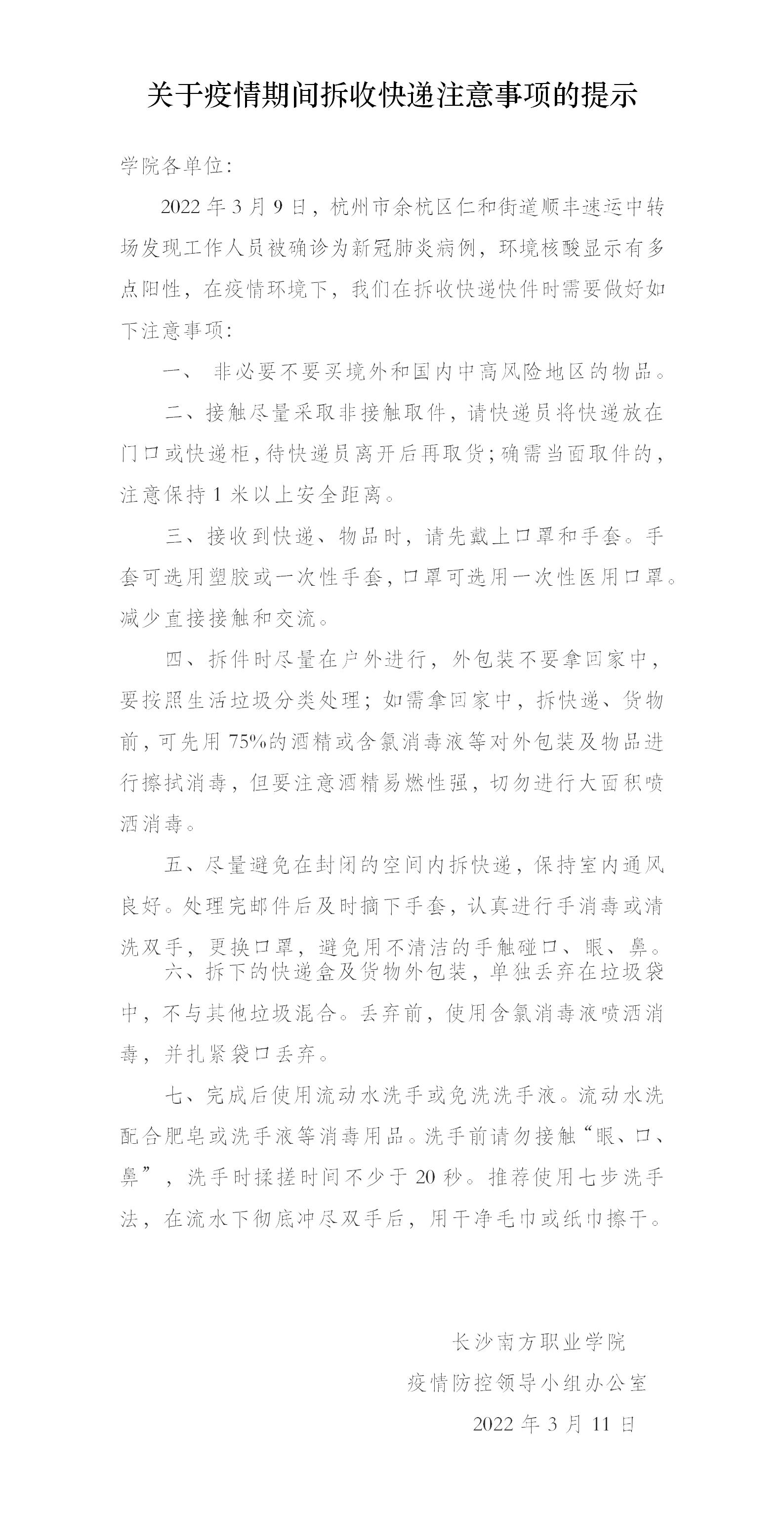 關(guān)于疫情期間拆收快遞注意事項(xiàng)的提示.docx