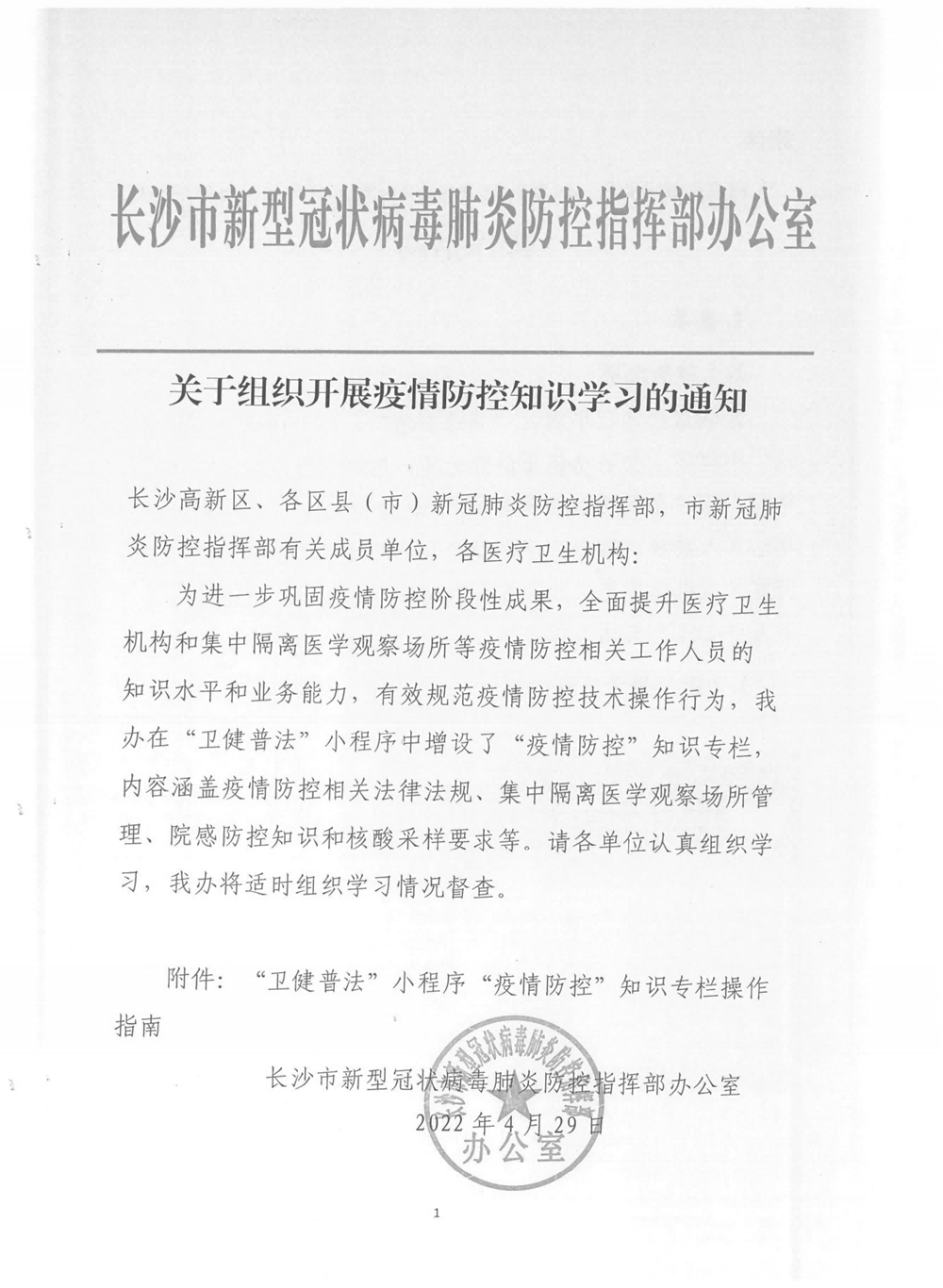 關于組織開展疫情防控知識學習的通知