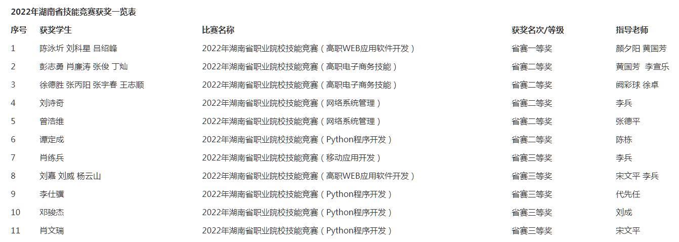 2022年“楚怡杯”湖南省職業(yè)院校技能大賽(高職組),信息工程系派出16支隊伍參加6個項目的比賽,共獲一等獎1項、二等獎5項、三等獎5項的好成績。