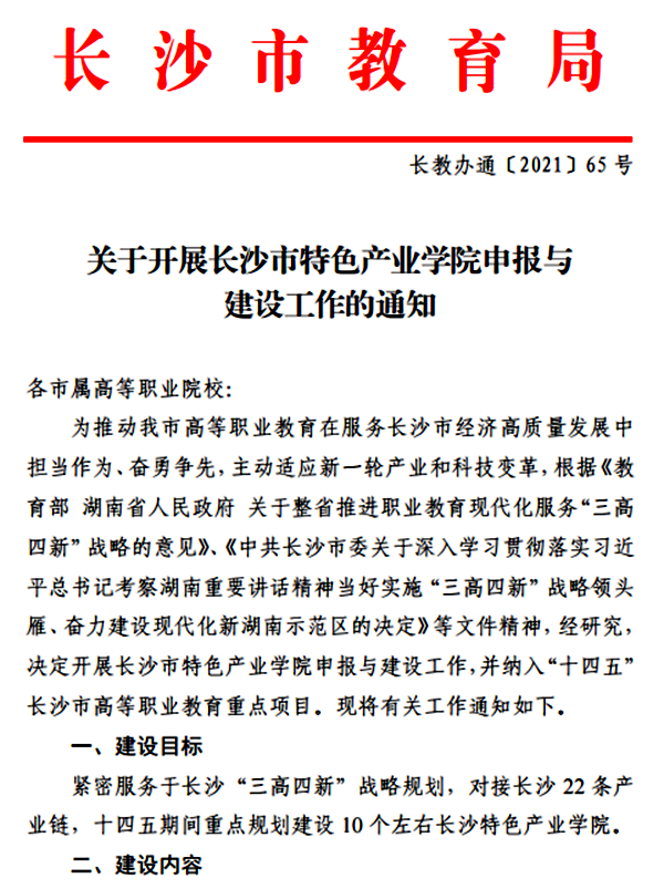 學(xué)校將以此為契機(jī),按照市教育局要求,面向長沙區(qū)域經(jīng)濟(jì)社會及產(chǎn)業(yè)轉(zhuǎn)型發(fā)展需求,進(jìn)一步深化人才培養(yǎng)模式改革,不斷提升專業(yè)建設(shè)質(zhì)量,完善產(chǎn)業(yè)學(xué)院機(jī)制體制,確保產(chǎn)業(yè)學(xué)院建設(shè)有成效有特色,切實(shí)發(fā)揮好產(chǎn)業(yè)學(xué)院作用,為長沙市經(jīng)濟(jì)和行業(yè)發(fā)展提供人才保障。