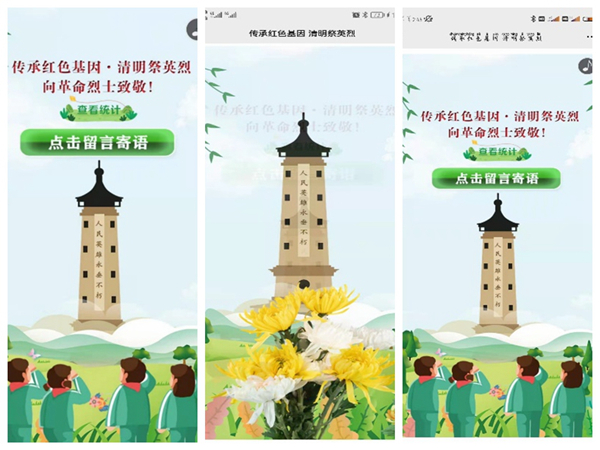 所有參加活動人員在環(huán)教124先集中觀看中華英烈網(wǎng)的英烈視頻,如《不能忘卻的紀念》、《祖國不會忘記》、《你的名字》等,然后通過手機在《文明湖南》進行云祭英烈活動。