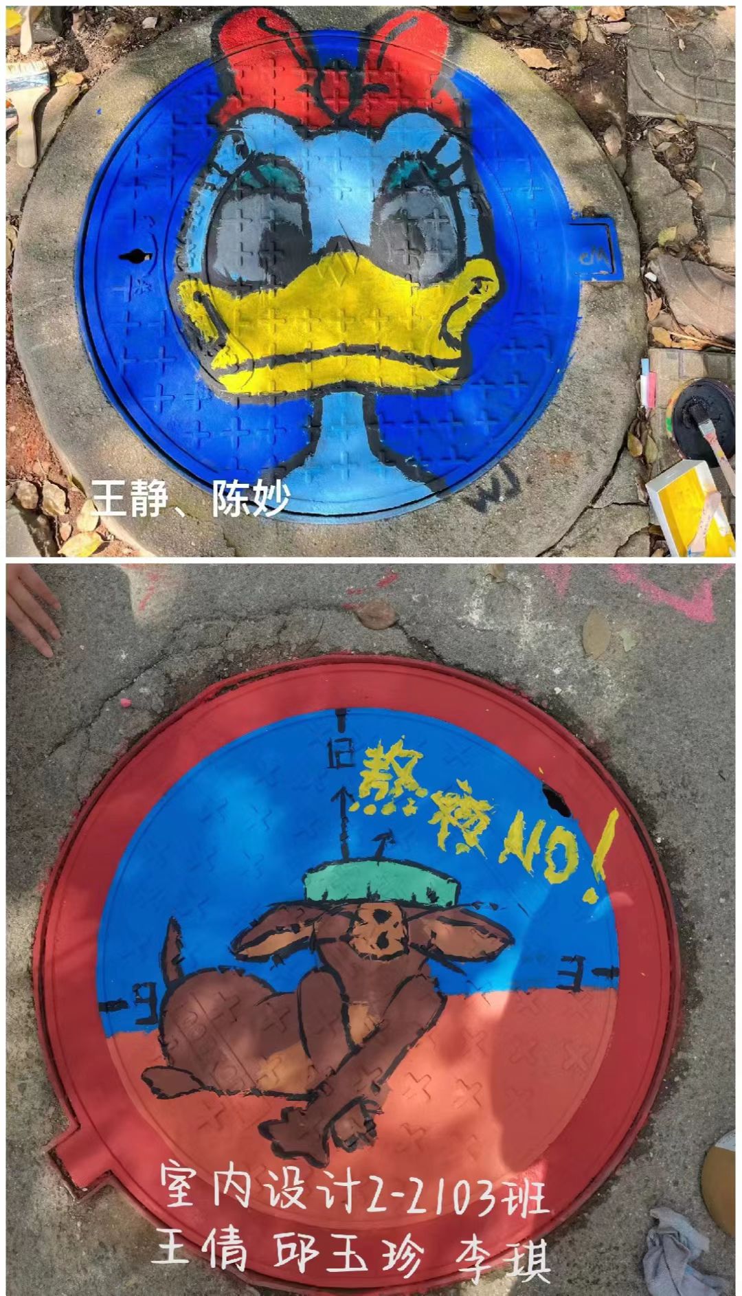 4月6日以來,國內(nèi)疫情形勢不容樂觀,建筑工程系師生高度配合學院封閉式管理,建筑室內(nèi)設(shè)計專業(yè)100余名學生,用畫筆將專業(yè)所學知識、技能用藝術(shù)的形式謳歌時代,贊美抗疫逆行者,美化校園,把校園內(nèi)的井蓋變成了一幅幅秀美的畫卷。既豐富了因疫情校園封閉式管理下同學們的文化生活,更增強了我院師生戰(zhàn)“疫”的信心。