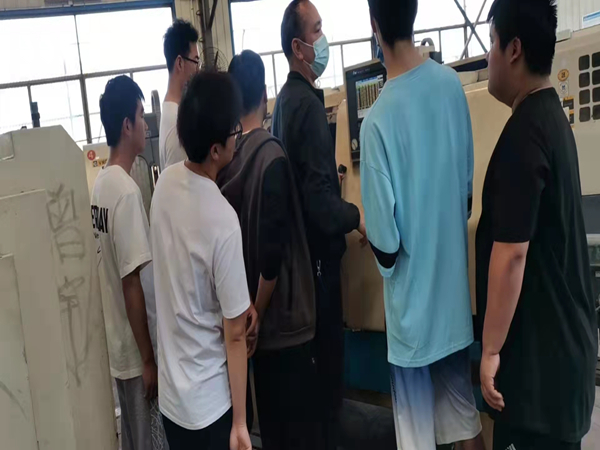 汪賢再老師指導(dǎo)學(xué)生數(shù)控銑床操作