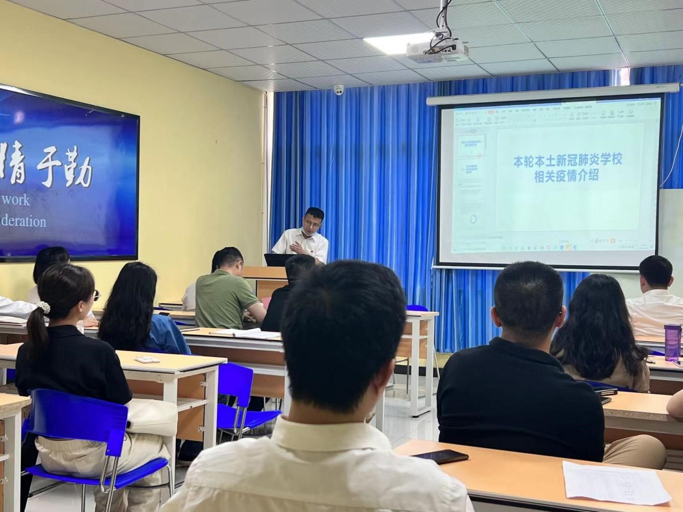 李兵主任首先傳達湖南省教育系統(tǒng)關于本輪本土新冠肺炎疫情形勢的防控及春季流行病防控的文件要求,并系統(tǒng)的講解了如何預防新冠疫情及肺結核等疾病的傳播等知識要點。