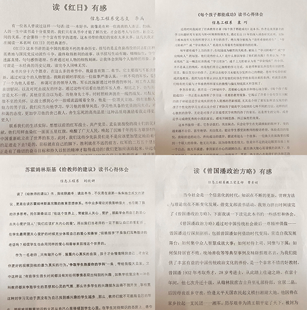活動的最后,信息工程系黨總支倡議所有黨員,讓讀書成為一種習慣、一種追求、一種生活方式,養(yǎng)成日讀一小時,月讀一本書。在閱讀中厚植黨員的精氣神,倡導爭做“悅讀黨員教師”,爭創(chuàng)“書香黨支部”,營造愛讀書、讀好書、善讀書的良好氛圍。讓讀書成為了解世界,拓展思維,升華境界的重要途徑。品書香盛宴、為人生增色;抒家國情懷,蓄前行力量。