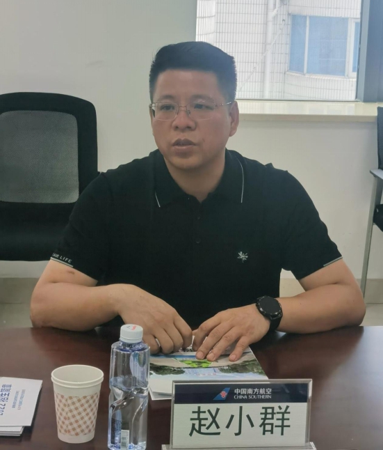 趙小群書記對(duì)南方航空湖南分公司一直以來對(duì)我院空中乘務(wù)專業(yè)群建設(shè)給予的支持和幫助表達(dá)衷心感謝。表示我院一貫落實(shí)畢業(yè)生就業(yè)工作“一把手”工程,制定出臺(tái)了專項(xiàng)行動(dòng)實(shí)施方案,希望通過走訪調(diào)研企業(yè),全面了解用人單位人才需求,為學(xué)院人才培養(yǎng)、就業(yè)指導(dǎo)服務(wù)提供依據(jù)??罩谐藙?wù)專業(yè)群為湖南省一流特色專業(yè)群,空中乘務(wù)專業(yè)教學(xué)團(tuán)隊(duì)為省級(jí)教學(xué)團(tuán)隊(duì),期待與南方航空湖南分公司在師資培養(yǎng)、課程建設(shè)、資源開發(fā)、實(shí)習(xí)實(shí)訓(xùn)基地建設(shè)等方面繼續(xù)深度合作。