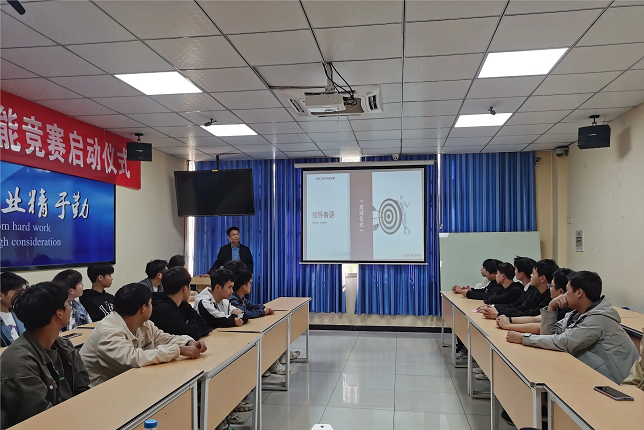 王眾磊同學作為學生代表發(fā)言,真誠的表達自己對于技能大賽的認識以及自己積極備賽的決心。他說:“我們作為一名高職生除了具備必要的專業(yè)理論知識還更應該注重培養(yǎng)自己的專業(yè)技術技能,因為只有擁有了一技之長我們才能立足于這個充滿競爭的社會。技能大賽就是一次提升自我很好的機會,過程中我們會切身的感受到純知識方面存在的欠缺,會督促我們不斷加強訓練,熟練掌握技能。”