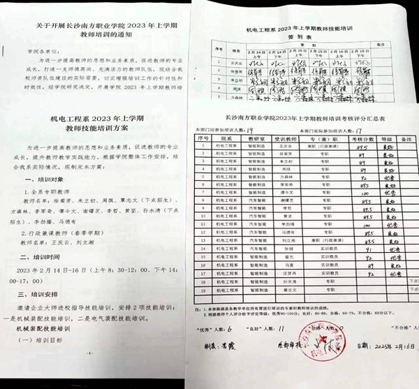 機(jī)電工程系教師專(zhuān)業(yè)技能培訓(xùn)方案、簽到記錄、考核評(píng)價(jià)結(jié)果