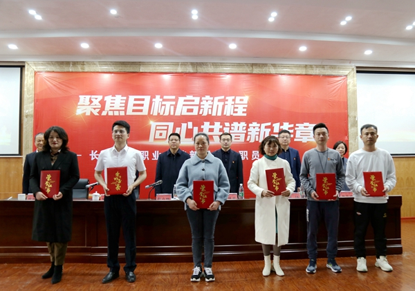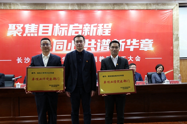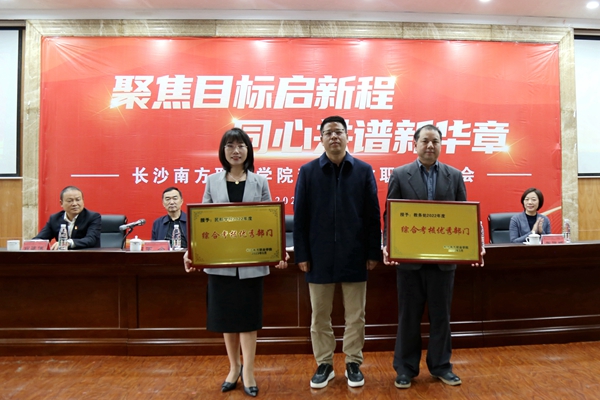 黨委副書記、校長肖曉春作工作報(bào)告并部署工作副校長王金宣讀學(xué)校2022年度先進(jìn)表彰文件。校領(lǐng)導(dǎo)為受表彰的先進(jìn)單位授牌,為受表彰的先進(jìn)個人頒發(fā)證書。