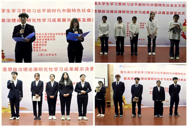5月6日下午,長(zhǎng)沙南方職業(yè)學(xué)院第九屆大學(xué)生學(xué)習(xí)貫徹習(xí)近平新時(shí)代中國(guó)特色社會(huì)主義思想暨思想政治理論課研究性學(xué)習(xí)成果展示決賽在學(xué)術(shù)報(bào)告廳舉行。來自民航學(xué)院、信息工程系、建筑工程系、機(jī)電工程系、經(jīng)濟(jì)貿(mào)易系8個(gè)研究性學(xué)習(xí)小組參加現(xiàn)場(chǎng)展示。經(jīng)評(píng)委專家評(píng)定,機(jī)電工程系機(jī)械制造及自動(dòng)化2-2203班學(xué)習(xí)小組、工業(yè)機(jī)器人技術(shù)2-2201班學(xué)習(xí)小組獲特等獎(jiǎng),經(jīng)濟(jì)貿(mào)易系大數(shù)據(jù)與會(huì)計(jì)2-2202班學(xué)習(xí)小組、金融服務(wù)與管理2-2203班學(xué)習(xí)小組獲一等獎(jiǎng),其他學(xué)習(xí)小組獲二等獎(jiǎng),另有10個(gè)研究性學(xué)習(xí)小組經(jīng)材料評(píng)審獲三等獎(jiǎng)。