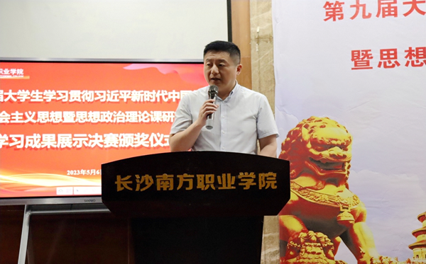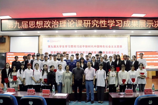頒獎(jiǎng)儀式副校長(zhǎng)吳濤宣布比賽結(jié)果,政府督導(dǎo)、校黨委書記趙小群作點(diǎn)評(píng)。趙小群指出,研究性學(xué)習(xí)是一種科學(xué)系統(tǒng)地學(xué)習(xí)方法,值得大家終身擁有并廣泛運(yùn)用到畢生的學(xué)習(xí)、工作和生活當(dāng)中。他強(qiáng)調(diào),研究性學(xué)習(xí)方法既要運(yùn)用于理論學(xué)習(xí),更要運(yùn)用于專業(yè)技能的學(xué)習(xí)。通過研究性學(xué)習(xí),使自己在研究中不斷成長(zhǎng),在學(xué)習(xí)中不斷實(shí)現(xiàn)自我成才。他要求,思政理論課要努力打造和培養(yǎng)學(xué)生成為有理想、有情懷的新時(shí)代青年的課堂,通過以賽促學(xué)、以賽促教的創(chuàng)新方式,加強(qiáng)學(xué)生團(tuán)隊(duì)彼此之間的合作能力,不斷拓寬視野,增加學(xué)生們學(xué)而信、學(xué)而用、學(xué)而行的能力,進(jìn)一步增強(qiáng)“四個(gè)自信”,成為有理想、敢擔(dān)當(dāng)、能吃苦、肯奮斗的新時(shí)代好青年!