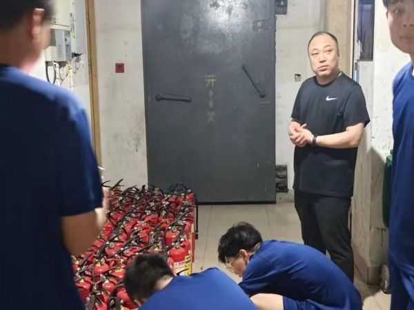 志愿者們?cè)谶M(jìn)行消防器材的查驗(yàn)