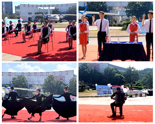 5月17日,在學校飛機坪前,由空中乘務、民航運輸服務、民航安全技術管理、高速鐵路客運服務、學前教育、音樂舞蹈表演等專業(yè)組成的學生代表,帶來空乘禮儀秀、應急處置技能、心肺復蘇及創(chuàng)傷包扎急救技能、擒敵技能、奧爾夫音樂、苗族舞蹈、手風琴獨奏等各項技能展示,獲得現場領導、老師及學生們的高度贊賞。