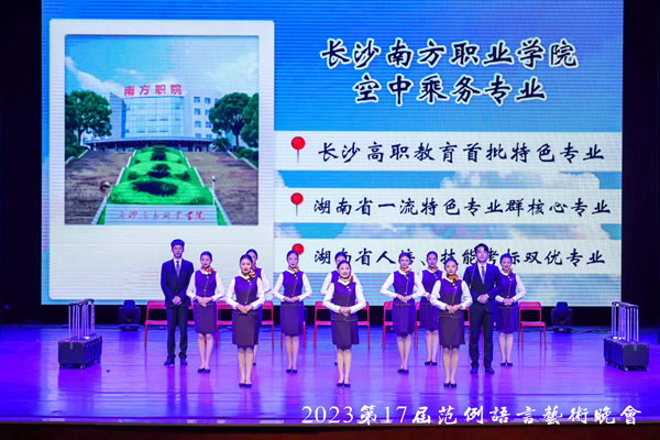 5月18日,空中乘務專業(yè)學生參加湖南第一師范第17屆范例語言藝術晚會,這是17年以來該晚會第一次邀請職業(yè)院校學子參加。南職學子精湛的服務禮儀技能、嫻熟的應急處置技能和良好的職業(yè)素養(yǎng)獲得了出席領導、嘉賓和觀眾的高度評價。