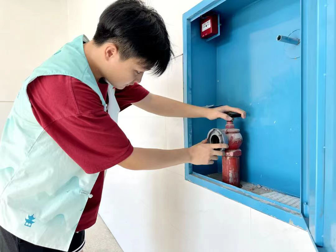 志愿者檢查消火栓設(shè)施情況