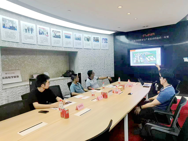 在蘇州工業(yè)園區(qū)相關(guān)負責人的帶領(lǐng)下,曹永彪處長一行參觀了富納集團總部智能裝備展廳,了解工業(yè)視覺、工業(yè)裝配、工業(yè)機器人、智能控制等工業(yè)自動化系統(tǒng)。企業(yè)負責人詳細介紹了富納科技在技術(shù)研發(fā)、設(shè)備研發(fā)、課題研發(fā)、智能化產(chǎn)品生產(chǎn)、技術(shù)革新、人才培養(yǎng)等方面的經(jīng)驗成果,校企雙方對多年的合作成果表示肯定,希望能夠與我校建立產(chǎn)業(yè)學院,共同培養(yǎng)社會需要、企業(yè)滿意、能力過硬的工匠型人才。