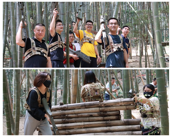 在充滿(mǎn)趣味娛樂(lè)性與挑戰(zhàn)性的“真人CS鐳戰(zhàn)”游戲中,各隊(duì)之間進(jìn)行了“激烈”比拼,最終紅、藍(lán)合隊(duì)獲勝。在團(tuán)隊(duì)比賽的同時(shí),大家也深刻體會(huì)到分工和協(xié)作的重要性。