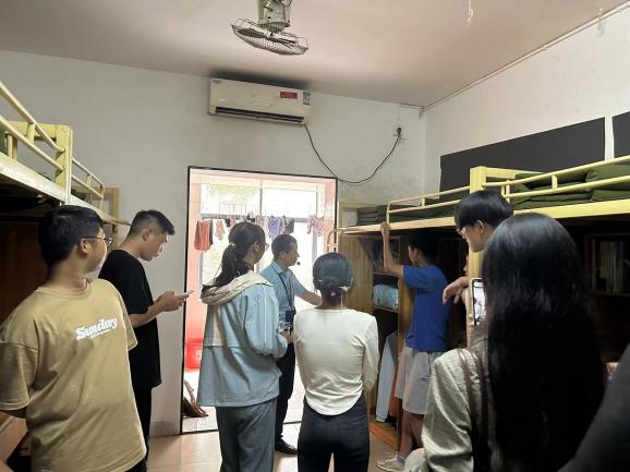 為延伸拓展2023級新生軍訓內(nèi)容,鞏固前期訓練成果,營造良好的宿舍環(huán)境,提升個人素養(yǎng),27日上午,2023級新生輔導員組織新生前往12棟學生宿舍,觀摩和學習消防準軍事化寢室內(nèi)務(wù)整理。