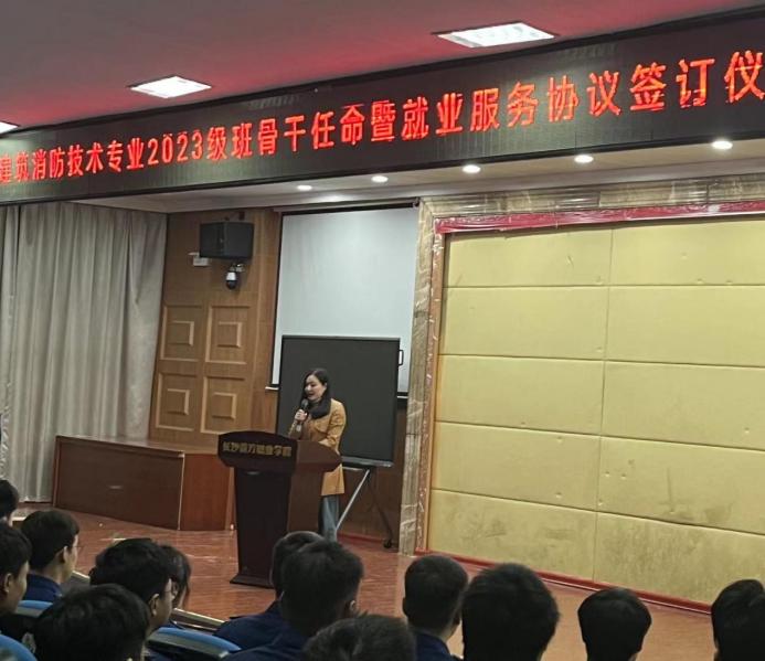 會(huì)后,建筑消防技術(shù)專業(yè)2023級(jí)全體學(xué)生簽訂就業(yè)服務(wù)協(xié)議。