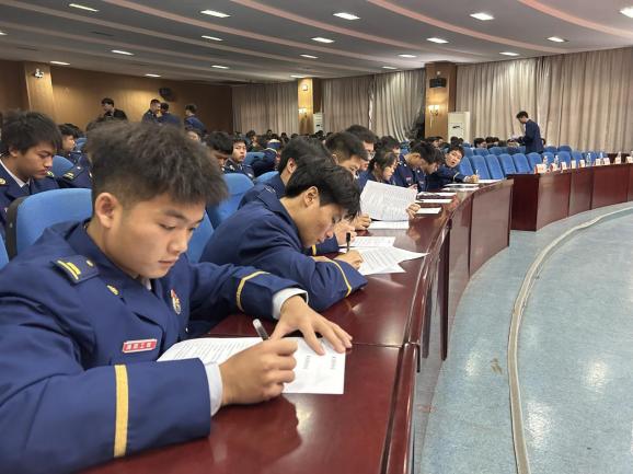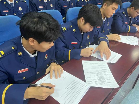2023級(jí)建筑消防技術(shù)專業(yè)四個(gè)分隊(duì)長(zhǎng)代表各自分隊(duì)宣讀挑戰(zhàn)、應(yīng)戰(zhàn)書,表示會(huì)樹立遠(yuǎn)大理想、練就過硬本領(lǐng)、擔(dān)當(dāng)時(shí)代責(zé)任,為分隊(duì)爭(zhēng)光、為學(xué)校創(chuàng)優(yōu)、為祖國(guó)奮斗,做有理想、有本領(lǐng)、有擔(dān)當(dāng)?shù)男聲r(shí)代中國(guó)青年!