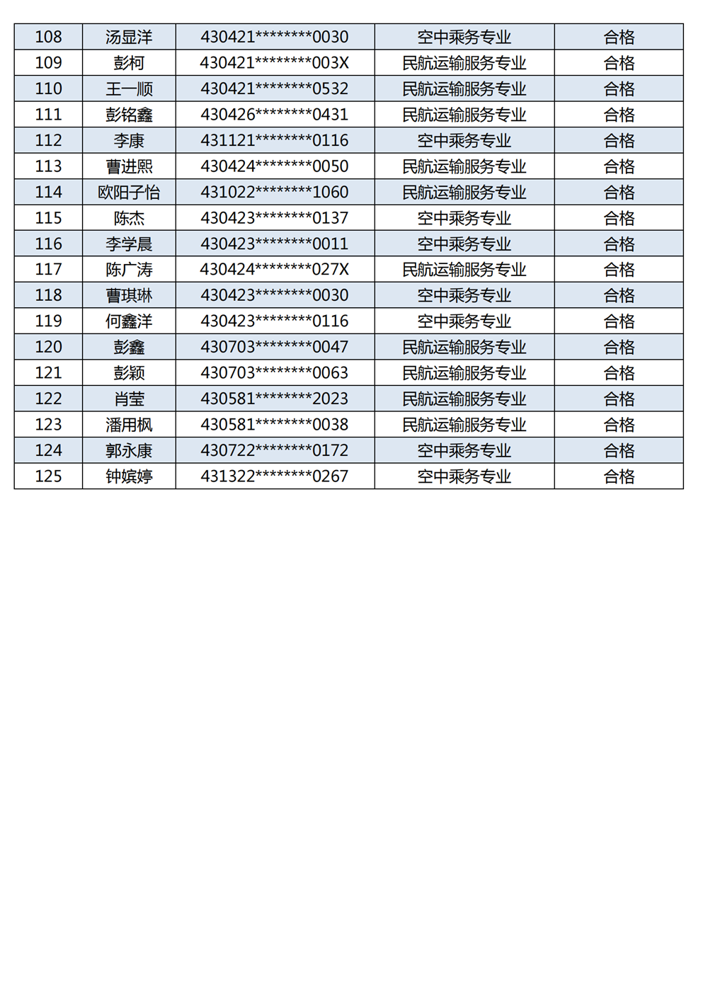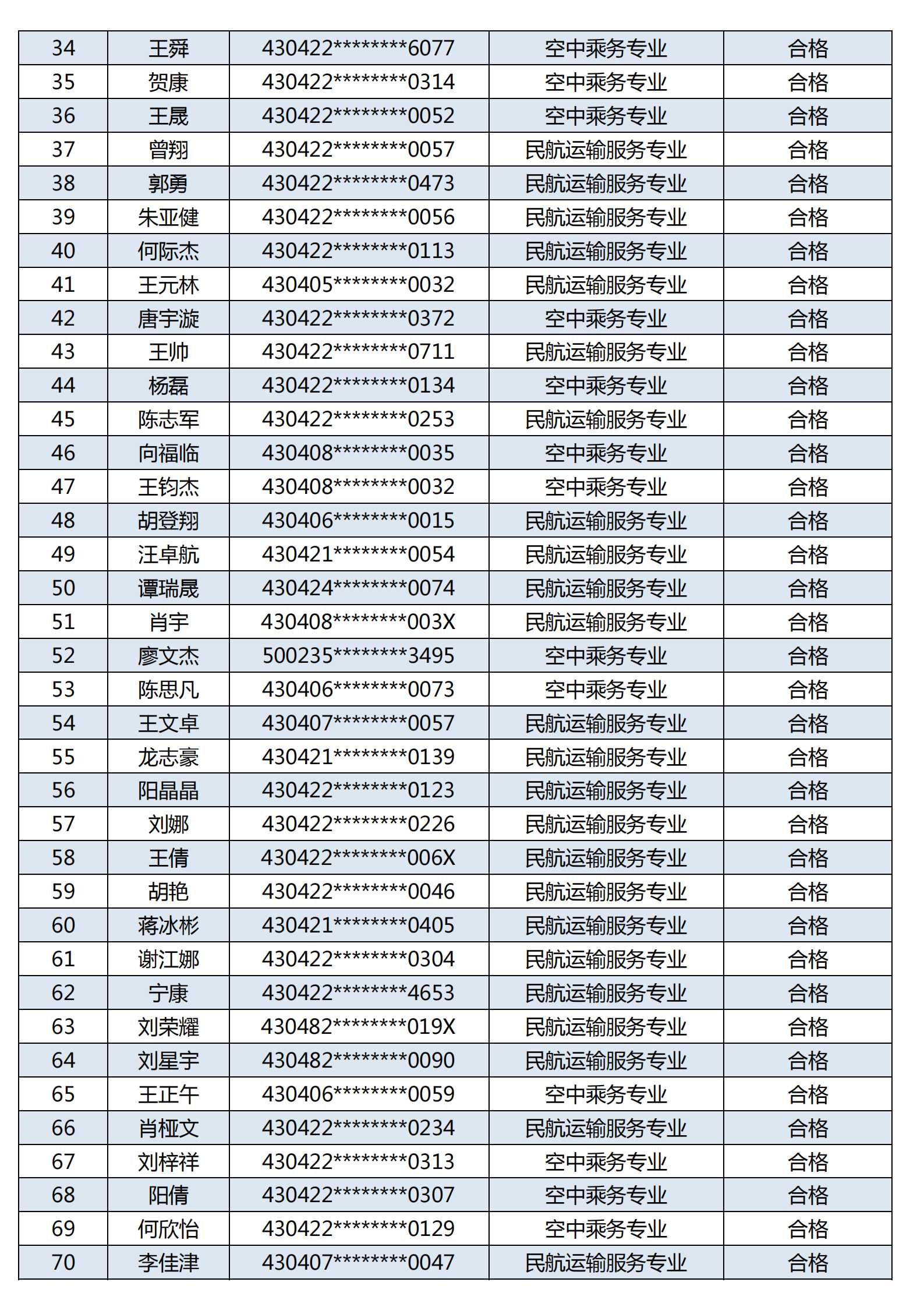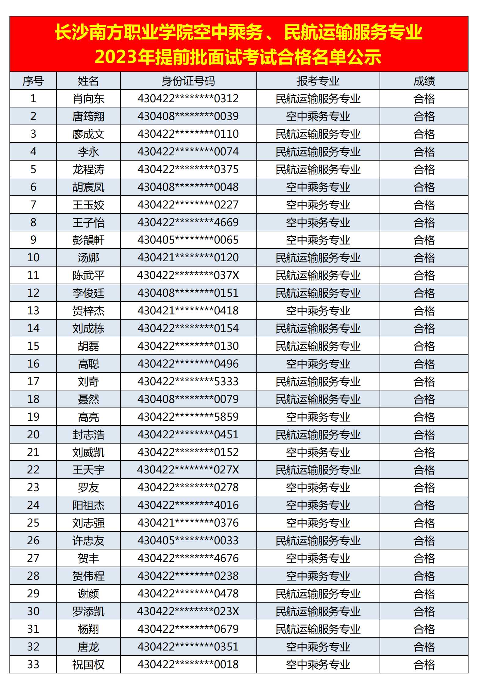 附:長沙南方職業(yè)學(xué)院空中乘務(wù)、民航運輸服務(wù)專業(yè)2023年提前批面試考試合格名單公示