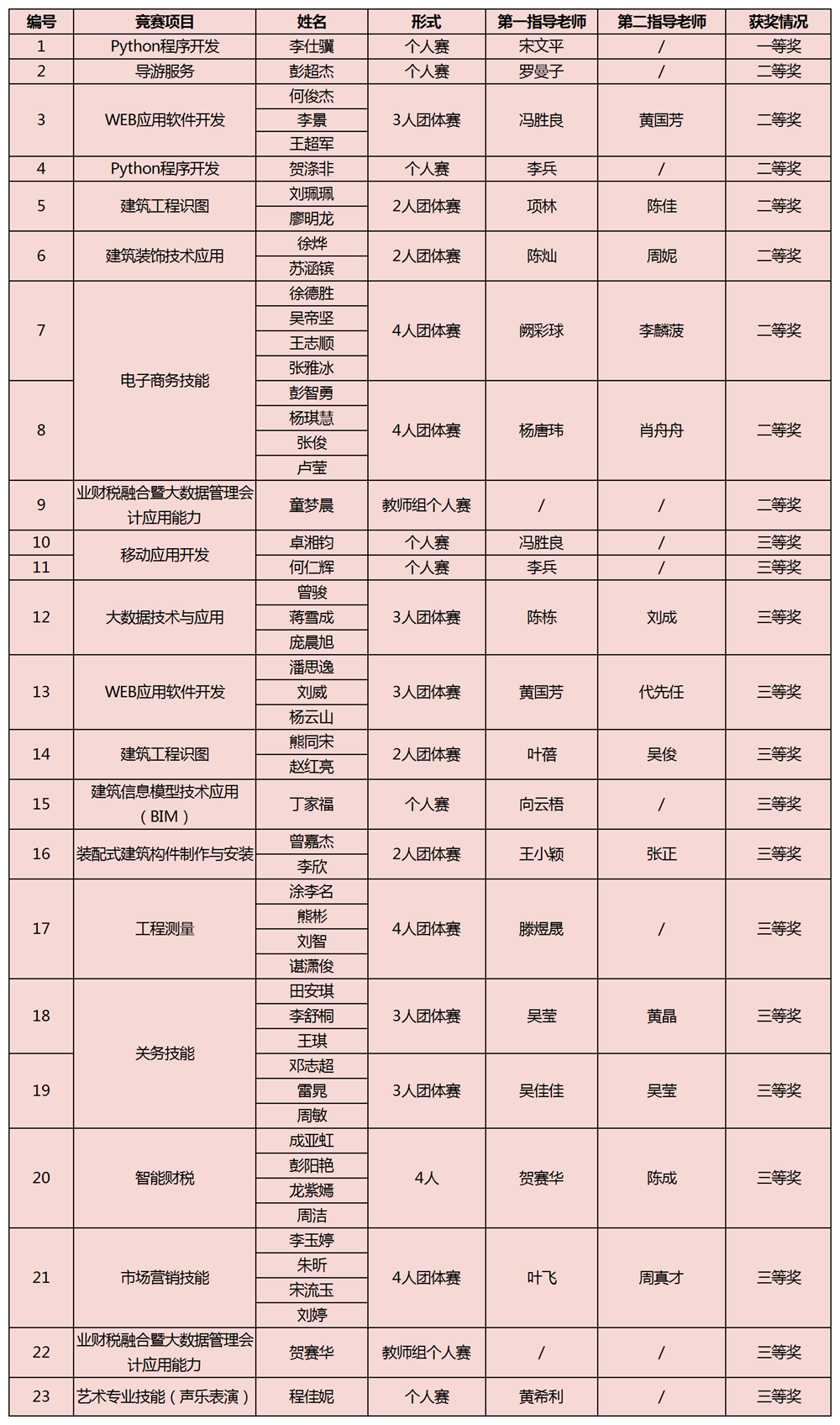 賽前學(xué)校進(jìn)行了多輪部署和動(dòng)員,各代表隊(duì)認(rèn)真組織了培訓(xùn),指導(dǎo)老師與選手們克服了疫情期間的種種困難,通過(guò)擬賽鍛煉選手的應(yīng)變能力,培養(yǎng)選手賽場(chǎng)上良好的心理素質(zhì),并利用寒假期間分賽項(xiàng)采用線上+線下模式進(jìn)行備賽訓(xùn)練。比賽中參賽選手沉著應(yīng)戰(zhàn),努力展示,經(jīng)過(guò)激烈角逐,斬獲一等獎(jiǎng)1項(xiàng),二等獎(jiǎng)8項(xiàng),三等獎(jiǎng)14項(xiàng)(含2022年度第二階段賽項(xiàng)1個(gè)),再次取得豐碩成果!獲獎(jiǎng)名單如下: