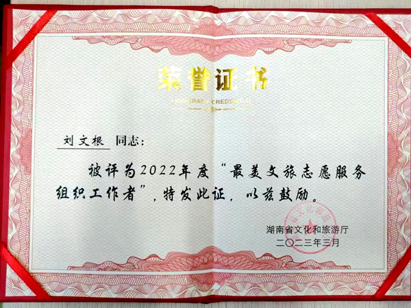 4月7日,省文化和旅游廳召開全省文化和旅游公共服務領域高質量發(fā)展工作會議,會議總結2022年度全省文旅志愿服務工作并表彰了2022年度突出集體與個人。長沙南方職業(yè)學院文旅志愿服務支隊被授予“最佳文旅志愿服務組織”,學校團委書記劉文根被評為2022年度“最美文旅志愿服務組織工作者”。