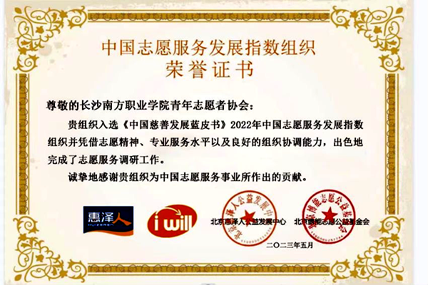 近日,我校青志協(xié)憑借出色的志愿服務(wù)工作,獲得北京惠澤人公益發(fā)展中心、北京博能志愿公益基金會(huì)聯(lián)合頒發(fā)的“中國(guó)志愿服務(wù)發(fā)展指數(shù)組織”。