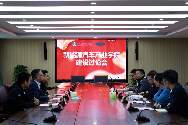 會議現(xiàn)場王慶云、劉磊分別介紹雙方與會人員,并就前期合作情況進行簡要匯報,雙方就新能源汽車產(chǎn)業(yè)學(xué)院組織架構(gòu)、建設(shè)內(nèi)容等方面展開討論。