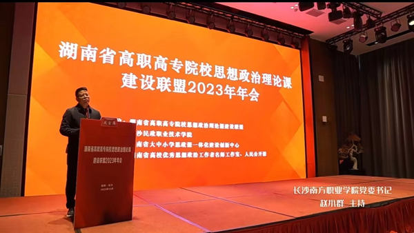 12月15日,湖南省高職高專院校思想政治理論課建設(shè)聯(lián)盟2023年年會(huì)在長(zhǎng)沙舉行,來(lái)自國(guó)內(nèi)思政領(lǐng)域的專家學(xué)者、高職高專院校領(lǐng)導(dǎo)、馬克思主義學(xué)院院長(zhǎng)、思政課部主任和思政課教師代表180余人參加會(huì)議。湖南省委教育工委宣傳部部長(zhǎng)、省教育廳思政處處長(zhǎng)甘文波出席會(huì)議并講話。