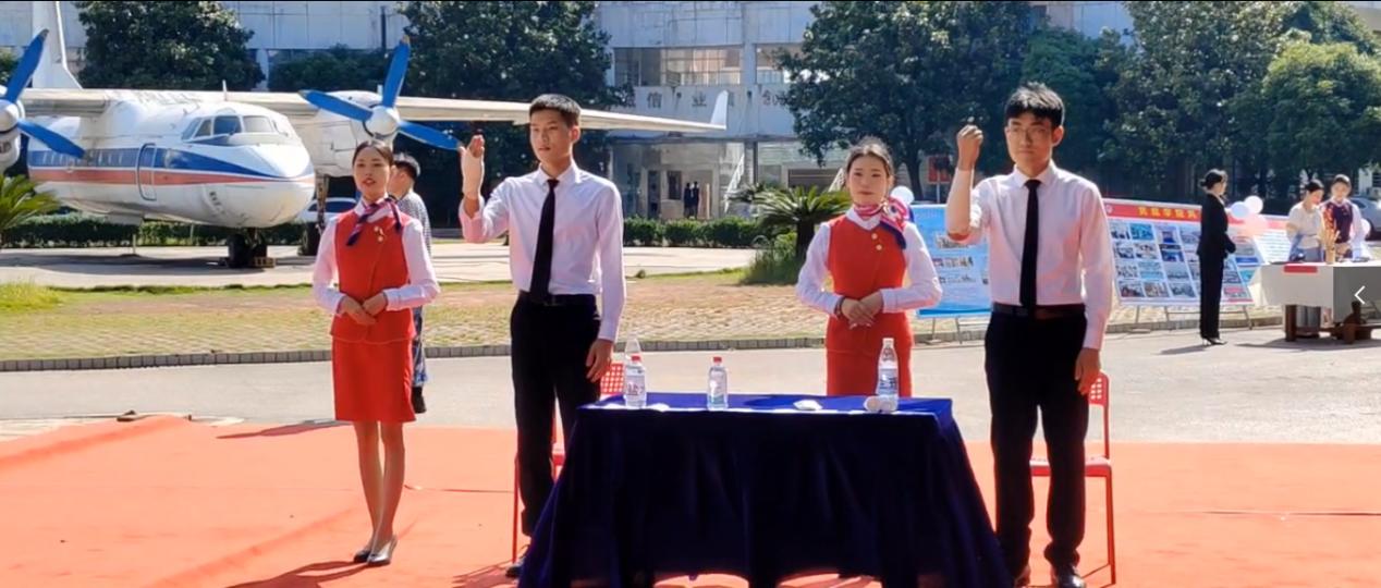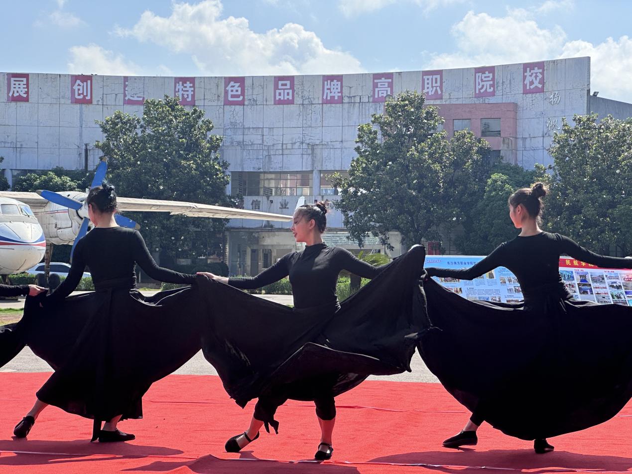 第一展區(qū)由空中乘務、民航運輸服務、民航安全技術管理、高速鐵路客運服務、學前教育、音樂舞蹈表演等專業(yè)的學生代表帶來空乘禮儀秀、應急處置技能、心肺復蘇及創(chuàng)傷包扎急救技能、擒敵技能、奧爾夫音樂、苗族舞蹈、手風琴獨奏等技能展示。