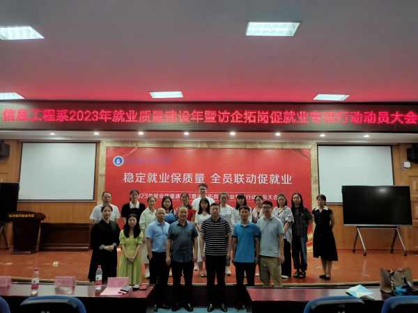 為深入學(xué)習(xí)貫徹落實黨的二十大精神和國務(wù)院及省委、省政府“穩(wěn)就業(yè)”“保就業(yè)”的決策部署,按照學(xué)院2023年就業(yè)質(zhì)量年建設(shè)方案的要求,信息工程系在學(xué)術(shù)報告廳召開了2023年就業(yè)質(zhì)量建設(shè)年暨訪企拓崗促就業(yè)專項行動動員大會。學(xué)校副校長吳濤、肖建偉出席,招生就業(yè)處副處長譚澤良,信息工程系主任李兵及師生代表參加此次活動。