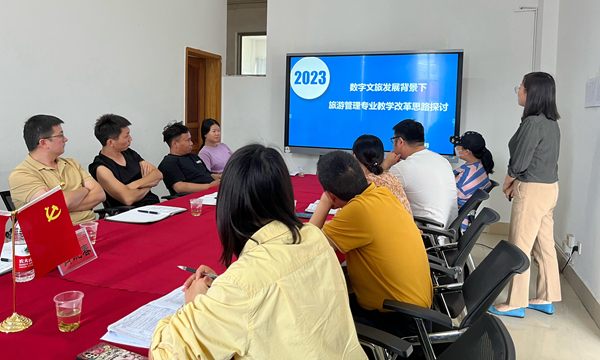 調(diào)研會上,民航學院院長王娜、副院長全國澤就二級學院基本情況、專業(yè)建設、團隊建設、校企合作、招生就業(yè)以及繼續(xù)教育等重點工作作了詳細匯報,同時也就存在的問題及困難進行分析。酒店旅游教研室主任吳紅英針對數(shù)字文旅發(fā)展背景下旅游管理專業(yè)教學改革思路作報告分享。